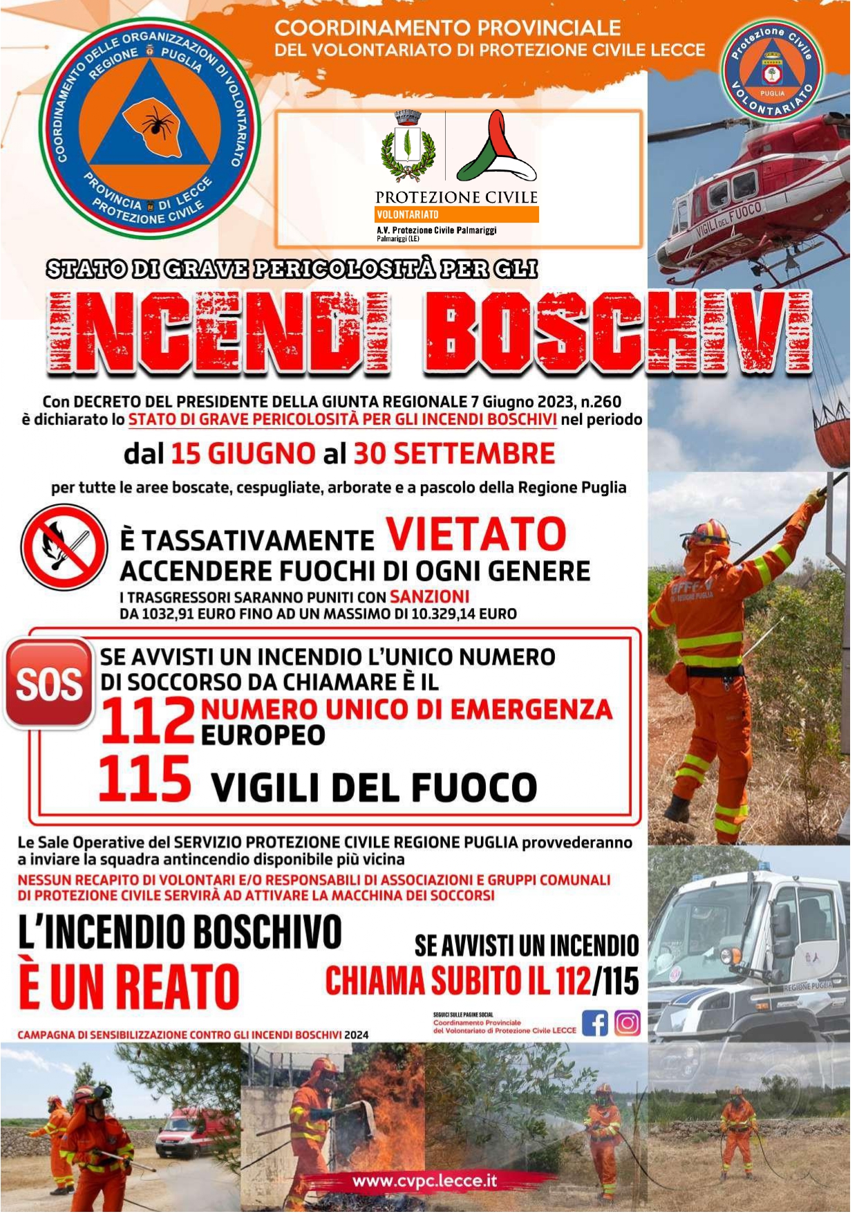 Stato grave pericolositą per gli incendi boschivi - 15 Giugno/30 Settembre 2024